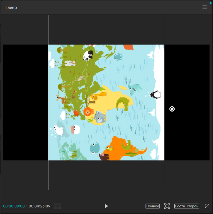 В окне плеера можно двигать видео, менять его размер и поворачивать. Внизу окна отображается длительность ролика, а также расположена кнопка переключения формата (Соотн. сторон) для разных соцсетей. Можно как и выбрать шаблон, так и задать собственные значения.