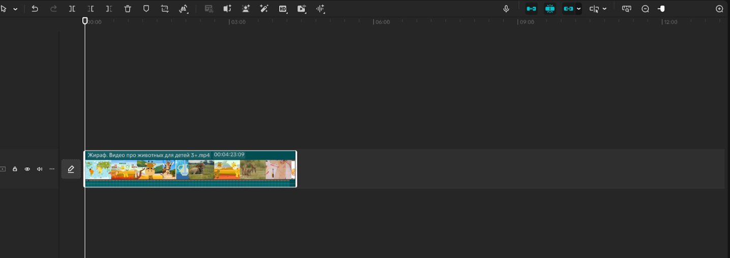 Внизу рабочей области находится таймлайн. Именно здесь происходит сборка ролика. Прямо над дорожками есть ряд иконок. Самая важная – «Разделить» (иконка скобок) – режет видео. Рядом: «Удалить», «Заморозить» и «Отразить».