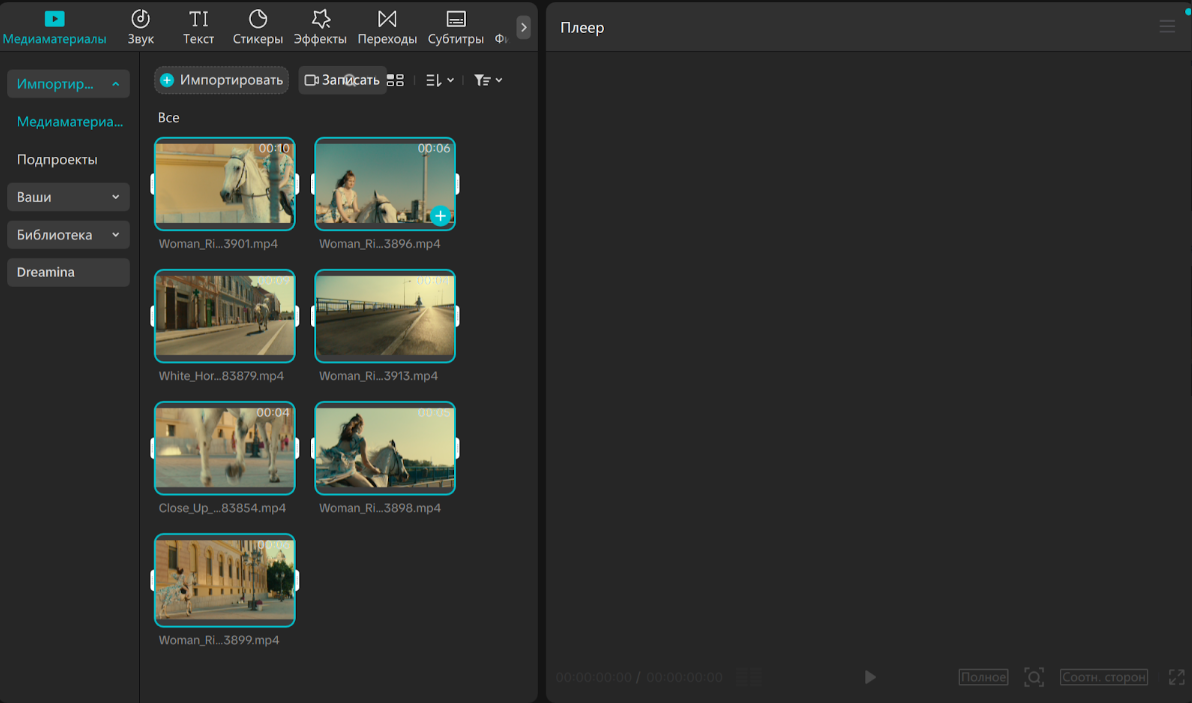 Итак, перед вами интерфейс CapCut Pro. К счастью, он построен так, чтобы пользователь не терялся среди множества функций и иконок. Независимо от того, на каком устройстве вы монтируете, пользоваться видеоредактором просто.