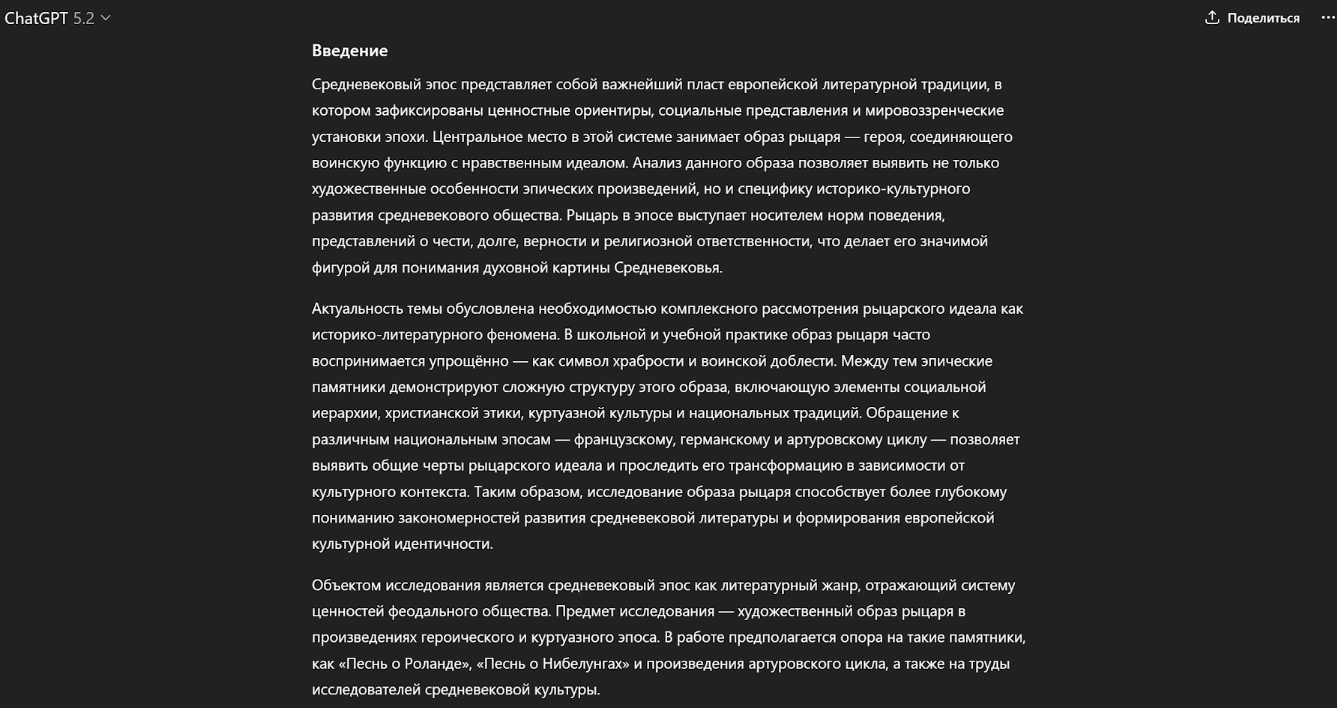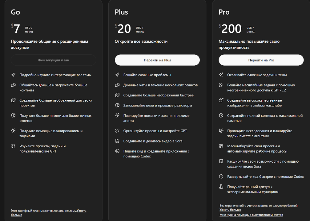 Чтобы получить связный и логичный научный текст, нужен план Plus и доступ к флагманским моделям, например, GPT-5.2. Официально такая подписка стоит $20 в месяц. Отдавать эти деньги ради учебных задач довольно накладно.