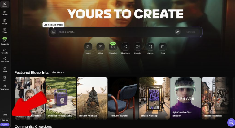 Шаг 1. На главном экране нажмите Image или используйте поле ввода промта в центре интерфейса.