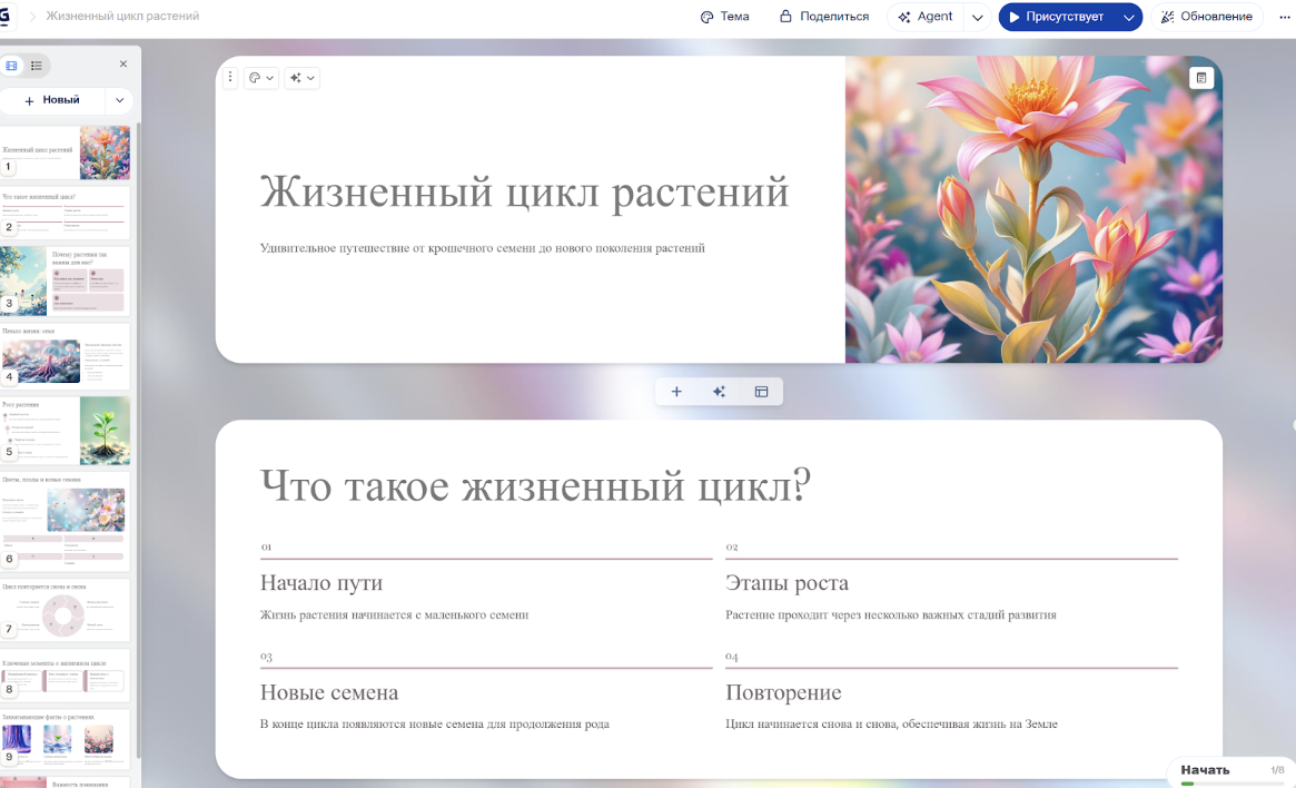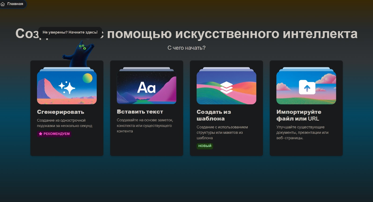 Если вы хотите получить презентацию еще быстрее, можно использовать сервисы вроде Gamma.app.