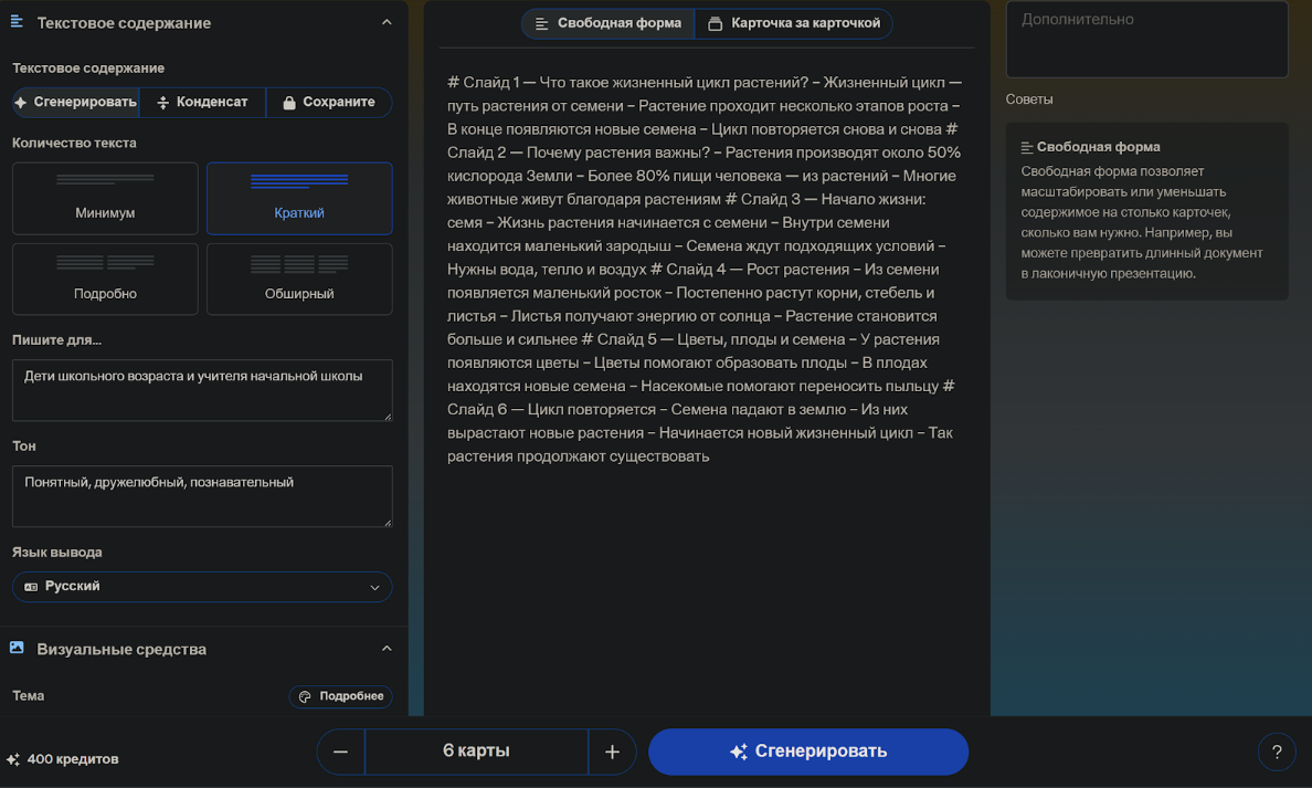 Бесплатная версия чата подходит для простых задач, например, написать текст или составить план. Но при работе с презентациями её возможностей часто не хватает.