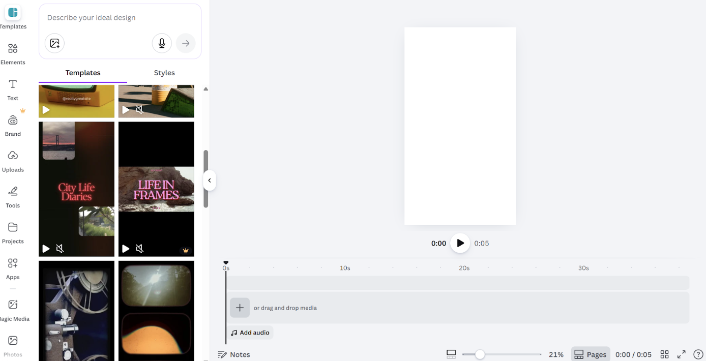С Canva процесс устроен иначе. Вы выбираете шаблон, добавляете свои видео, меняете текст – и уже через несколько минут получаете готовый ролик. Без долгого обучения и сложного монтажа. В этой статье рассмотрим весь процесс: от регистрации до экспорта готового файла.