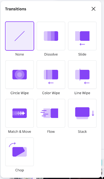 Шаг 4. Добавьте переходы между сценами. Кликните на кадр, а затем выберите Add transition во всплывающем меню. В бесплатной версии доступны базовые переходы, в Pro – более 30 вариантов.