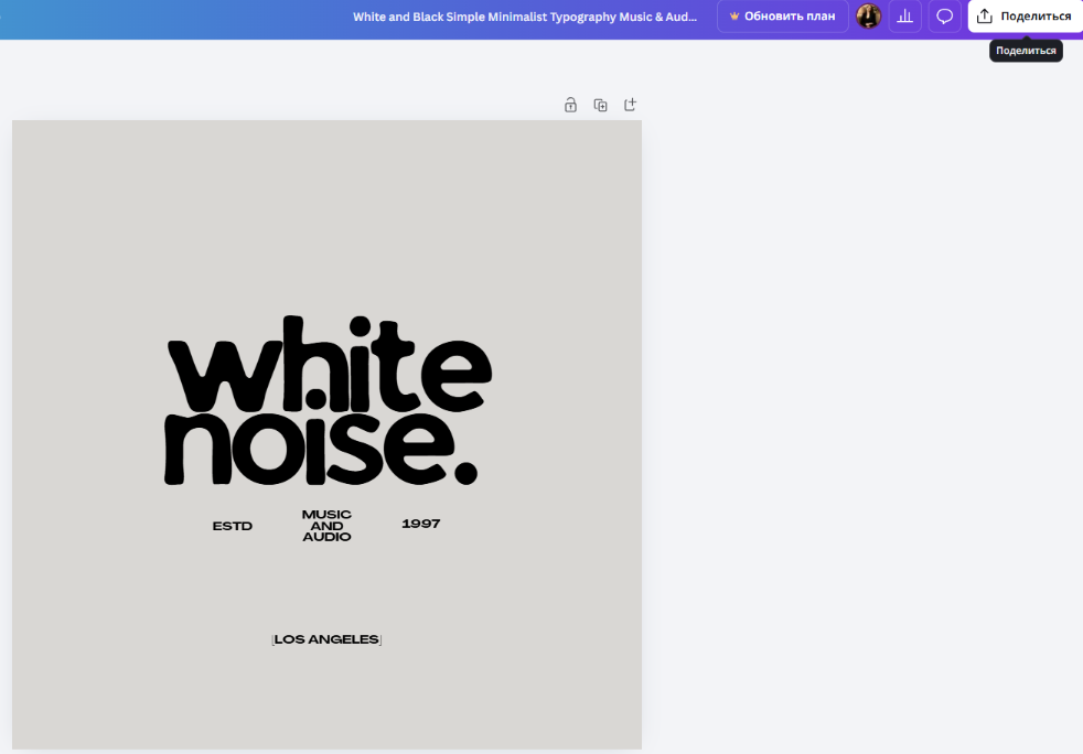 Шаг 1. Откройте готовый дизайн. Нажмите кнопку «Поделиться» в правом верхнем углу экрана.