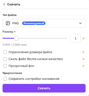 Меню скачивания скрывает важные функции, которые напрямую влияют на результат экспорта. По умолчанию они могут быть свернуты, но именно здесь находятся главные инструменты для подготовки идеального дизайна. Давайте разберем основные параметры: