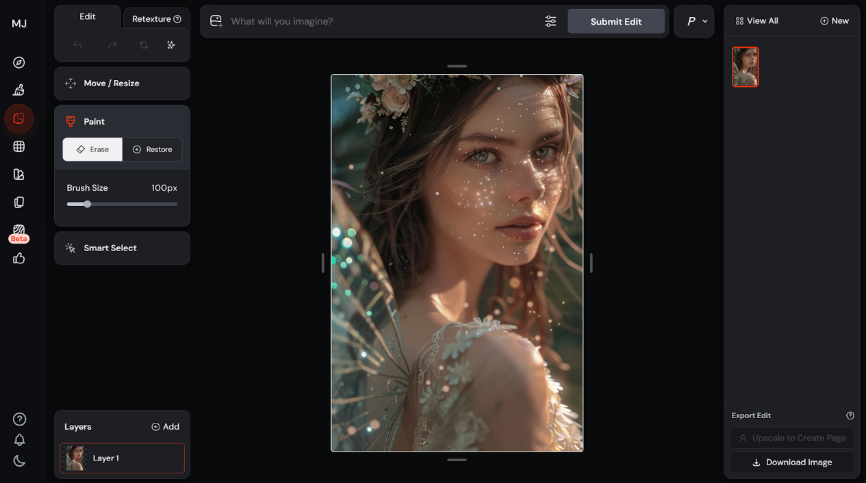 Repaint – это встроенный инструмент на сайте Midjourney, который позволяет редактировать уже готовое изображение. Не всё целиком, а точечно: вы выбираете зону – и нейросеть перегенерирует только её, не трогая остальное.