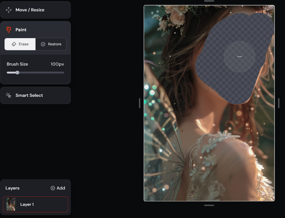 Шаг 4. Выберите инструмент Erase и закрасьте лицо на изображении.