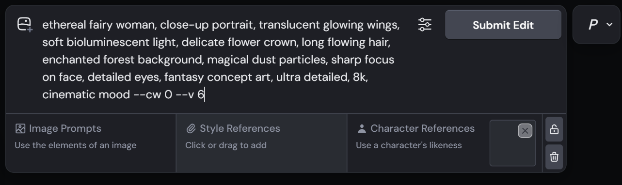 Важно! Если ваша задача – заменить именно лицо, а не весь образ целиком, всегда используйте --cw 0. Без этого параметра Midjourney может «утянуть» с референса причёску или детали одежды.