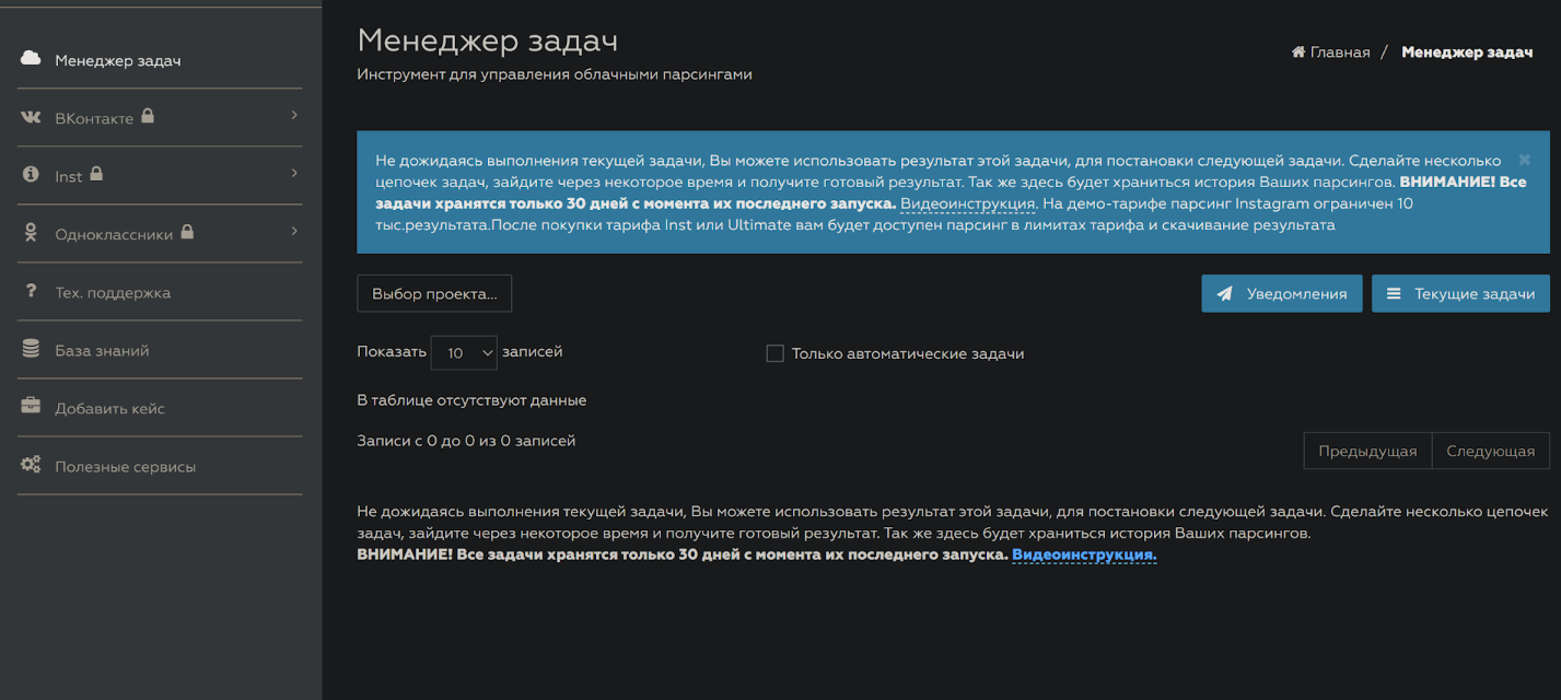 Сердце системы – это менеджер задач. Он находится в самом верху левого меню и обозначен иконкой облака. В отличие от десктопных аналогов, здесь можно запустить задачу и выключить компьютер, поскольку Segmento Target работает в облаке. Важно! При создании задачи, вы увидите поле «Название». Многие его пропускают, и зря. Через неделю работы в вашем аккаунте скопится десяток файлов по типу «Задача 1», «Задача 2» и «Задача 3». Разобраться в этом будет невозможно. Возьмите за правило называть процессы понятно: «Подписчики конкурентов_Январь» или «Активные мамы_Киев». В панели отображаются активные, завершенные и остановленные задачи, а также их статус. Дальше задаются параметры парсинга. Не выставляйте максимальные параметры. Эффективнее сразу ограничить аудиторию фильтрами, чем потом тратить часы на очистку мусора. После запуска задачи важно не просто дождаться её завершения, а проверить результат. Менеджер показывает объем собранной базы: если цифры подозрительно большие или слишком маленькие, это сигнал вернуться к настройкам и скорректировать критерии. Как парсить с Instagram Разберем процесс настройки на примере инструмента «Сбор подписчиков». Это базовый сценарий для работы с аудиторией конкурентов.