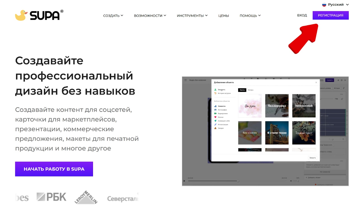 Шаг 1. Перейдите на сайт Supa и нажмите кнопку «Регистрация».